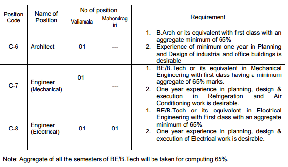 Applications are invited for the following positions purely on short-term contract basis for LPSC units located at Valiamala near Thiruvananthapuram and Mahendragiri near Nagercoil.